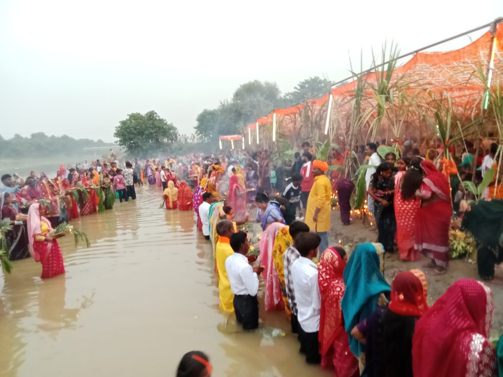 महिलाहरूले नदी किनारमा बेदी बनाई सूर्यदेवलाई अर्घ्य अर्पण गरे भने पुरुष, बालबालिका र वृद्धवृद्धा सबैजना उपस्थित भएका थिए।