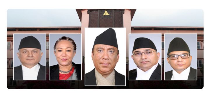 उक्त संवैधानिक इजलासमा प्रधानन्यायाधीश प्रकाशमान सिंह राउतको नेतृत्वमा न्यायाधीशहरू सपना प्रधान मल्ल, कुमार रेग्मी, हरिप्रसाद फुयाल र मनोजकुमार शर्मा रहेका छन् ।