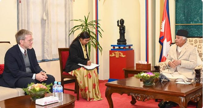राष्ट्रपति रामचन्द्र पौडेलसँग नेपालका लागि अमेरिकी राजदूत डिन आर थम्प्सनले बिदाई भेट गरेका छन् ।