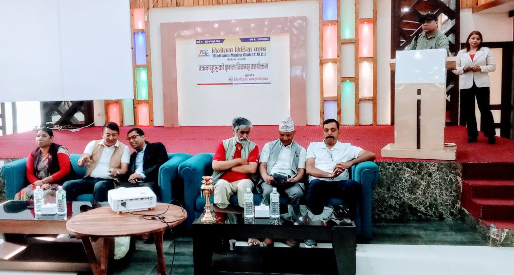 तिलोत्तमा मिडिया क्लबको आयोजना तथा तिलोत्तमा नगरपालिका रुपन्देहीको सहयोगमा पत्रकारहरुको क्षमता विकास कार्यक्रम तथा ज्ञानकाशी स्मृति पत्रकारिता पुरस्कार वितरण कार्यक्रम सम्पन्न भएको छ।