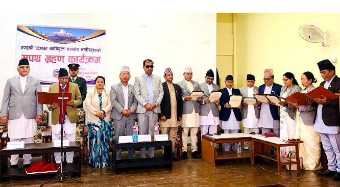 गण्डकी प्रदेश सरकारको मन्त्रिपरिषद् पुनर्गठन भएको छ । पुनर्गठित मन्त्रिपरिषद्का नवनियुक्त मन्त्रीहरूले पद तथा गोपनीयताको शपथ ग्रहण गरिसकेका छन् ।