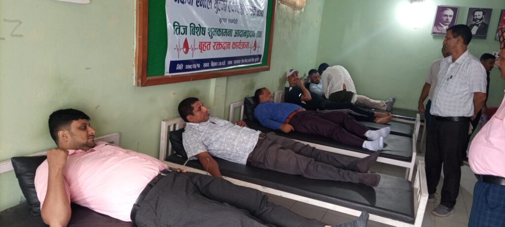कार्यक्रमा प्रदेश कमिटी सदस्य चिन्तामणी पाण्डे, हिरा एसी ,निर्वतमान अध्यक्ष देबराज खनाल लगायतको आतिथ्यता रहेको कार्यक्रम मंचका अध्यक्ष हेम बहादुर थापाको अध्यक्षता , कार्यक्रम संयोजम लक्षमण पन्थको स्वागत मन्तव्य र सचिव चिरन अर्यालको संचालनमा सम्पन्न भएको थियो । अहिले सम्म करिव ५० जनाले रक्तदान गरिसकेको र दिउसो ४ बजे सम्म रक्तदान कार्यक्रम जारी रहने संयोजम लक्षमण पन्थले जाकारी दिनुभएको छ ।