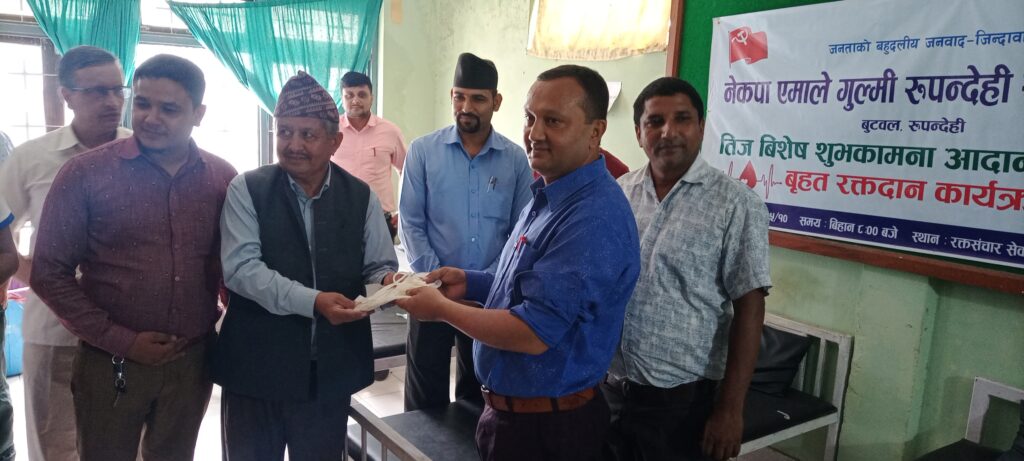 पछिल्लो समय राजनिती प्रति नागरिकको वितृष्णा बढिरहेको बेला नेकपा एमाले गुल्मी रुपन्देही सम्पर्क मञ्चलले पुण्य काम गरेर सबैको प्रसंसाको पात्र बनेको छ । राजनैतिक दल र भातृसंगठनहरु भाषण र कुरा गर्ने काम नगर्ने भन्ने सोच बढिरहेको बेला मञ्चले बृहत रक्तदान कार्यक्रम संचालन गरेर सबैको मन जितेको छ ।