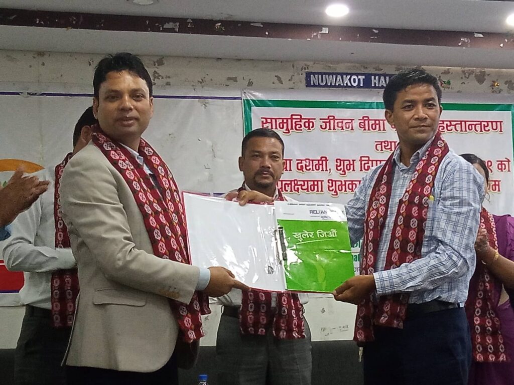 शनिबार सामुहिक जीवन बिमा पोलिसी हस्तान्तरण कार्यक्रम गरि आफ्ना शेयर सदस्यहरुलाई रिलायन्स लाइफ इन्स्योरेन्स मार्फत जीवन बिमा गरि दिएको हो ।