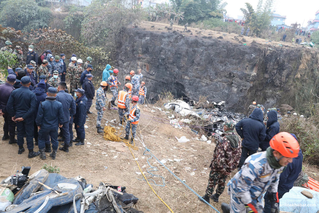 २ माघ, काठमाडौं । पोखरामा आइतबार बिहान भएको विमान दुर्घटनाको आज पनि बिहानैदेखि उद्धार तथा बेपत्ताको खोजी कार्य सुरु भएको छ ।सुरक्षाकर्मीको टोली बिहानैदेखि उद्धार कार्यमा लागेको छ ।आइतबार काठमाडौंबाट पोखराका लागि उडेको यती एयरलाइन्सको नाइन-एन एएनसी एटीआर ७२-५०० विमान अवतरणअघि दुर्घटना भएको थियो ।