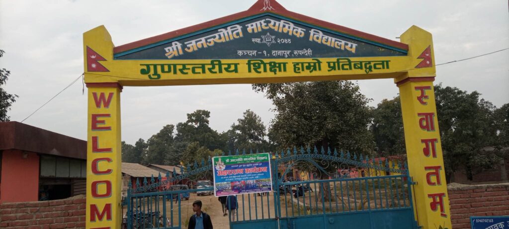 कञ्चन रुपन्देहीको कञ्चन गाउपालीका वाड न १ दानापुर मा रहेको जनज्योति माध्यमिक बिद्यालय को ३५ औं वार्षिकोत्सब सम्पन्न भएको छ । कार्यक्रममा प्रमुख अतिथि कञ्चन गाउँपालिका अध्यक्ष नवराज ढकाल ले शिक्षा बिना परिवर्तन संभब नहुनेभएका ले गुणस्तरीय शिक्षा सगै भौतिक बिकासमा गाउँपालिका लागि परेको बताउदै बिद्यालय को ३५ औं वार्षिकोत्सब को अवसरमा शुभकामना दिनु भयो।विशिष्ट अतिथि वडा न १का वडा अध्यक्ष हरिनारायण थारु , सामाजिक शिक्षा संयोजक कार्यपालिका सदस्य चित्रलाल तुलाचन ,बिद्यालय ब्यबस्थापन समिति सल्लाहकार लोक बहादुर भुजेल, संथापक प्राचार्य प्रेम बहादुर थापा, वडा सदस्य लेखा राहादी, लगाएतले बिद्यालयको बारेमा शुभकामना दिदै गुणस्तरीय शिक्षा निर्माणको लागी अभिभावक बिद्यार्थी शिक्षक सबै जिम्मेवारी हुनुपर्नेमा जोड दिनु भयो ।