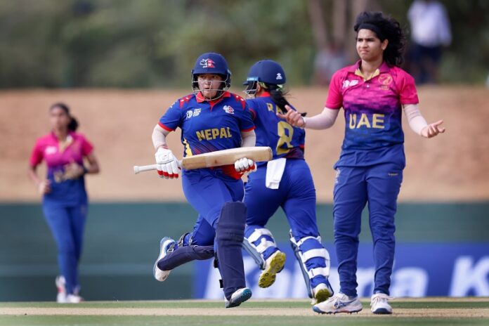 प्रतियाेगितामा तेस्राे पटक सहभागिता जनाएकाे नेपालकाे याे पहिलाे जित हाे । यसअघिका प्रतियोगितामा नेपाल एक खेल पनि नजिती समूह चरणबाटै बाहिरिएको थियो ।यूएईले दिएकाे १ सय १६ रनकाे लक्ष्य नेपालले १६ ओभर १ बलमा ४ विकेट गुमाएर भेटायाे । नेपालकी ओपनर ब्याटर सम्झना खड्काले अर्धशतक बनाइन् । उनले ४५ बलमा नट आउट ७२ रन जाेडिन् । यूएईकी कविशा इगाेदागेले ३ विकेट लिइन् ।