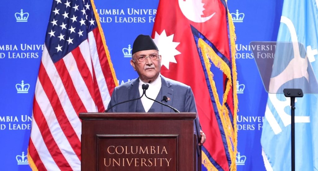 न्युयोर्क । प्रधानमन्त्री केपी शर्मा ओलीले विदेशमा रहेका नेपाली युवालाई रोजगारी विकासका लागि स्वदेशमा फर्केर अवसर सृजना गर्न आग्रह गरेका छन् । संयुक्त राष्ट्रसङ्घको ७९औँ महासभामा भाग लिन नेपाली प्रतिनिधिमण्डलको नेतृत्व गर्दै संयुक्त राज्य अमेरिकाको न्युयोर्कमा रहेका प्रधानमन्त्री ओलीले सोमबार कोलम्बिया विश्वविद्यालयद्वारा आयोजित वल्ड लिडर्स फोरममा गरिबी निवारण गरी सबैलाई सम्मानजनक रूपमा बाँच्न पाउने अधिकार दिलाउन समृद्ध नेपाल सुखी नेपालीको राष्ट्रिय आकाङ्क्षा अघि सारिएको स्पष्ट पारे ।