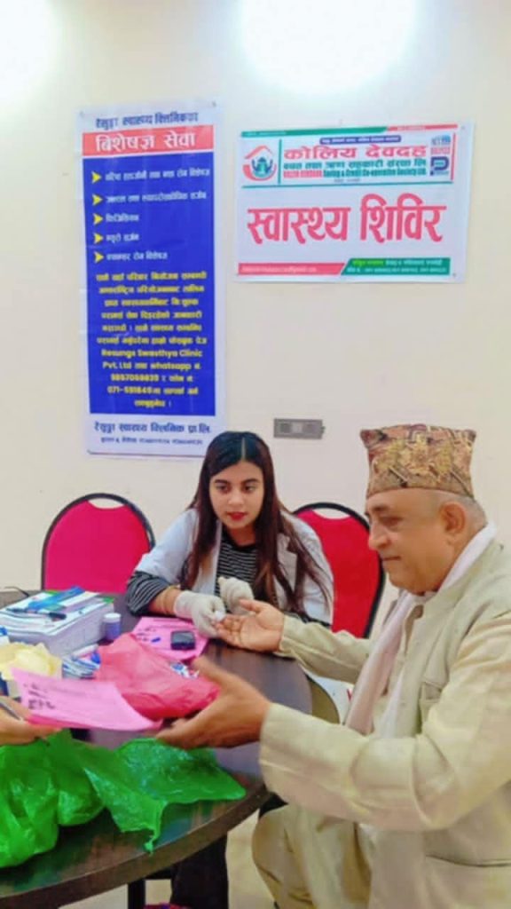क्लिनिकले सुगर ,प्रेसरको निःशुल्क स्वास्थ्य परीक्षण गरेको हो। कोलिय देवदह बचत तथा ऋण सहकारी संस्था खैरेनीको साधारण सभाको अवसरमा सनलाइट होटल पिपलडाँडा तथा पाठक फुडल्यान्ड खैरेनीको तह आयोजनामा स्वास्थ्य शिविर सञ्चालन भएको थियो।