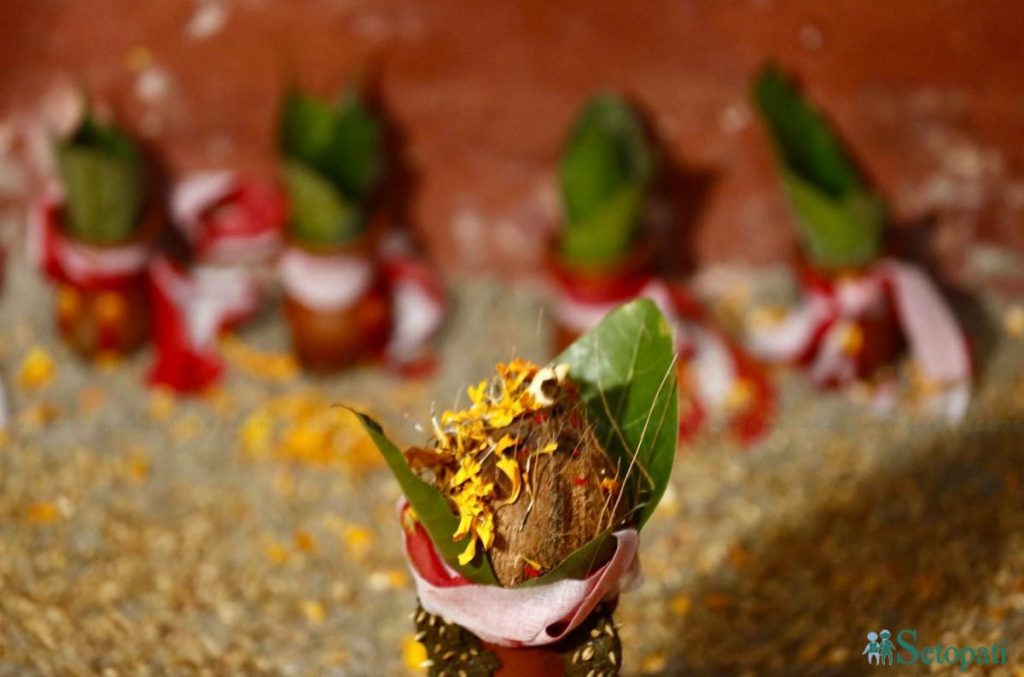 नवरात्रको पहिलो दिन बिहीबार दसैँ घर वा पूजाकोठामा वैदिक विधिपूर्वक घटस्थापना गरी जौको जमरा राखिएको थियो । घटस्थापनाको अर्थ देवीको ध्यान साधनामा स्थापित हुनु पनि हो भन्ने श्रीमद्देवीभागवतलगायत पुराण एवं धर्मशास्त्रीय ग्रन्थमा उल्लेख गरिएको छ । यही शास्त्रीय वचनका आधारमा धेरै भक्तजनले नवरात्रमा घर एवं शक्तिपीठमा देवीको साधना गरेर बिताउँछन् ।
