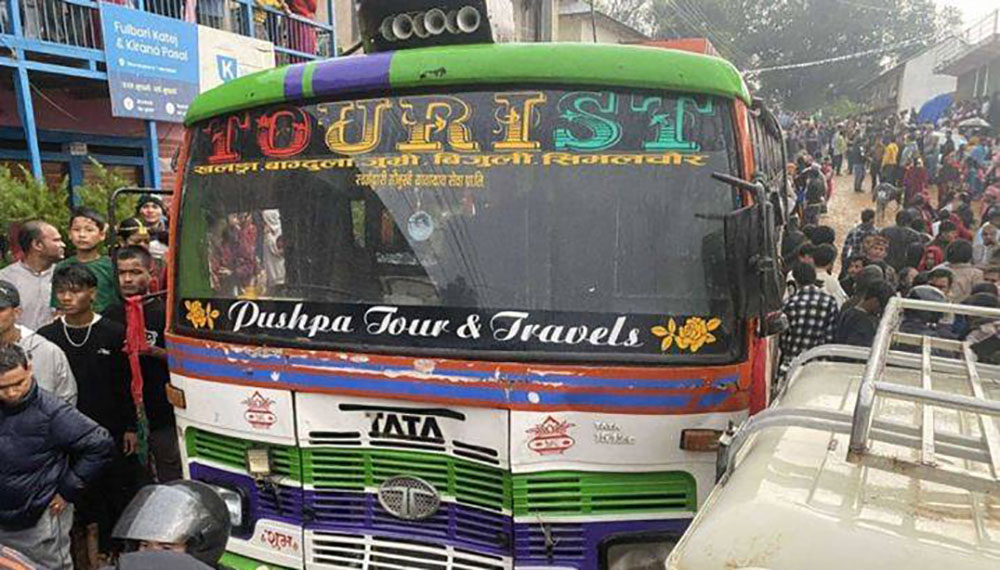भूमिकास्थान नगरपालिका वडा नं ५ र ६ को सिमाना पर्ने जयठाटीमा आज साँझ ५ बजेतिर देउसीभैलो नाचिरहेको सडक छेउकाे स्थानमा ना ३ ख २४७१ नं को बसको ‘ब्रेक फेल’ हुँदा दुर्घटना भएको थियो ।