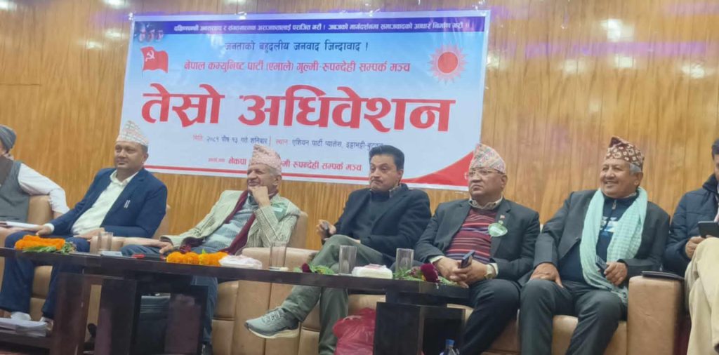 सम्पर्क मञ्चका अध्यक्ष हेम थापाको अध्यक्षतामा सम्पन्न कार्यक्रममा एमाले रूपन्देही जिल्ला अध्यक्ष यज्ञ गैरे ,एमाले गुल्मी जिल्ला अध्यक्ष बालसिंह काउछा ,केन्द्रीय समन्वय संयोजक श्रीप्रसाद पाण्डे ,सम्पर्क मञ्चका इन्चार्ज केदारचन्द्र भुसाल लगायतले बाेल्दै अधिवेशनले सशक्त नेतृत्व चयन गर्ने अभिभारा पुरा गरी पार्टीलाई थप उचाइमा पुर्याउन आवश्यक रहेको धारणा राखे।
