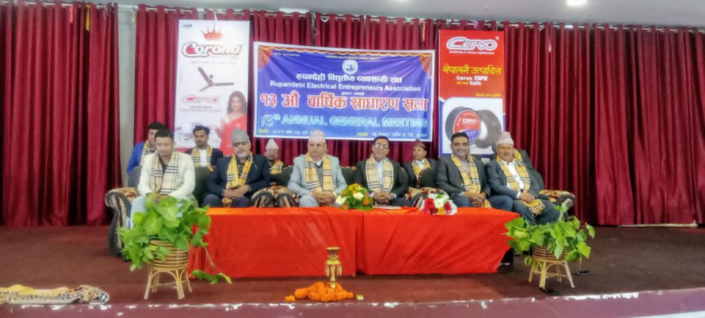 रूपन्देहीमा रहेका विद्युतीय व्यवसायीहरूको साझा संस्था रूपन्देही विद्युतीय व्यवसायी संघको १३औं वार्षिक साधारण सभा शनिबार बुटबलमा सम्पन्न भएको छ। साधारण सभामा बोल्दै नेपाल विद्युतीय व्यवसायी महासंघका अध्यक्ष रेशम प्रसाद देवकोटाले विद्युत व्यवसायीलाई व्यवसायमा सहजता ल्याउने र एक व्यक्तिले गर्दा हुन नसकेका काम सामुहिकताबाट गर्न सकिने हुनाले सबै व्यवसायी संगठित भई लाग्नुपर्नेमा जोड दिए ।