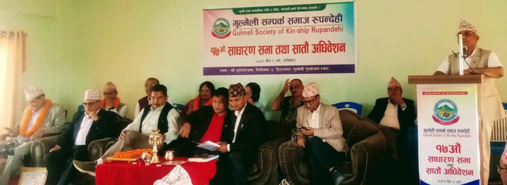 शनिबार रूपन्देहीको तिलोत्तमा डिङ्गरनगरमा रहेको श्रृङ्गेश्वर धाम परिसरमा सचिवालय रहेको सम्पर्क समाजको साताैं अधिवेशनलाई सम्बोधन गर्दै गुल्मेलीहरू राजनीतिक, शैक्षिक, व्यावसायिक, स्वास्थ्य ,समाजसेवा हरेक तह र तप्कामा अग्रपंक्तिमा रहेको बताए।