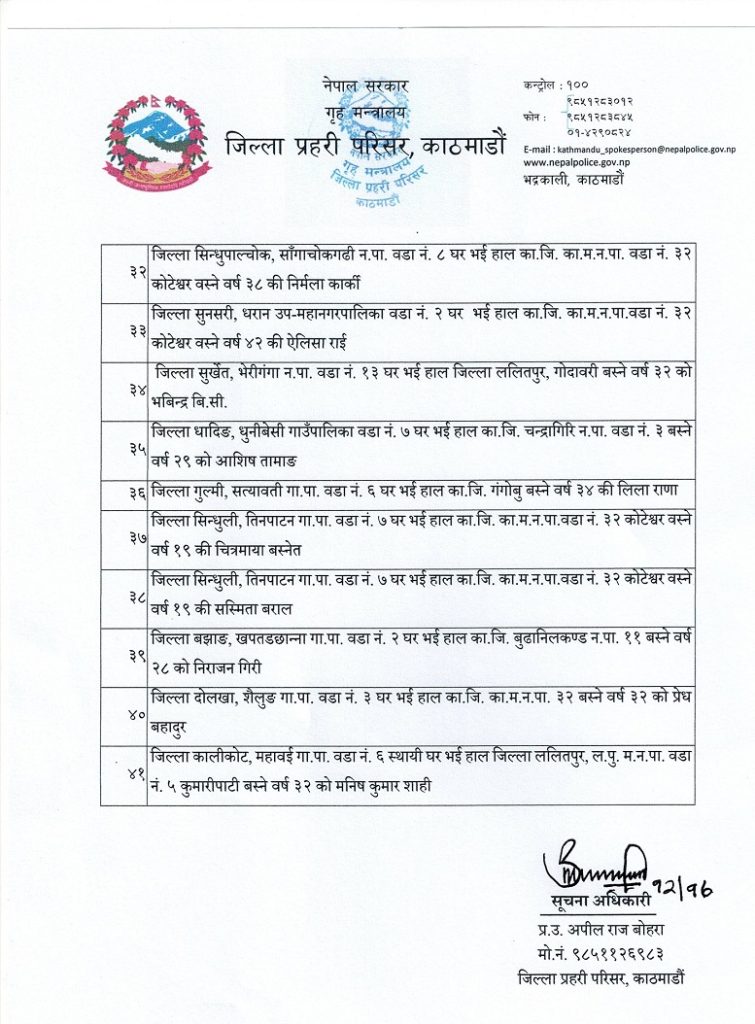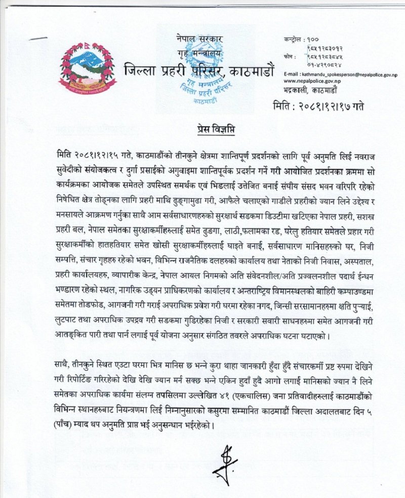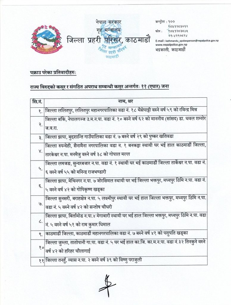 यस्तै उनीहरुसहित सबैलाई आपराधिक उपद्रव र सङ्गठित अपराध सम्बन्धी कसूरमा मुद्दा चलाइएको जिल्ला प्रहरी परिसर काठमाण्डौले जनाएको छ ।