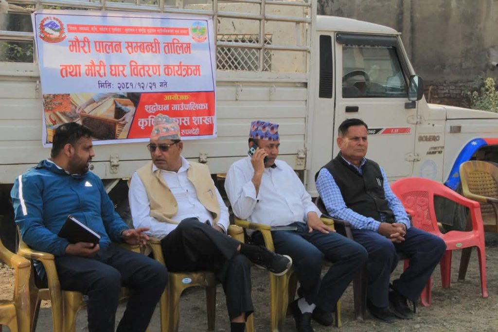 रुपन्देही २१ चैत्र — शुद्धोदन गाउँपालिका कृषि विकास शाखा मानपकडीको आयोजनामा मौरी पालनसम्बन्धी तालिम तथा मौरी घार वितरण कार्यक्रम बिहिवार सम्पन्न भएको छ।