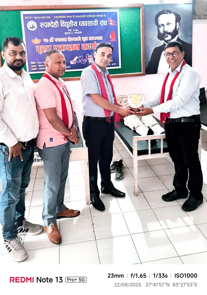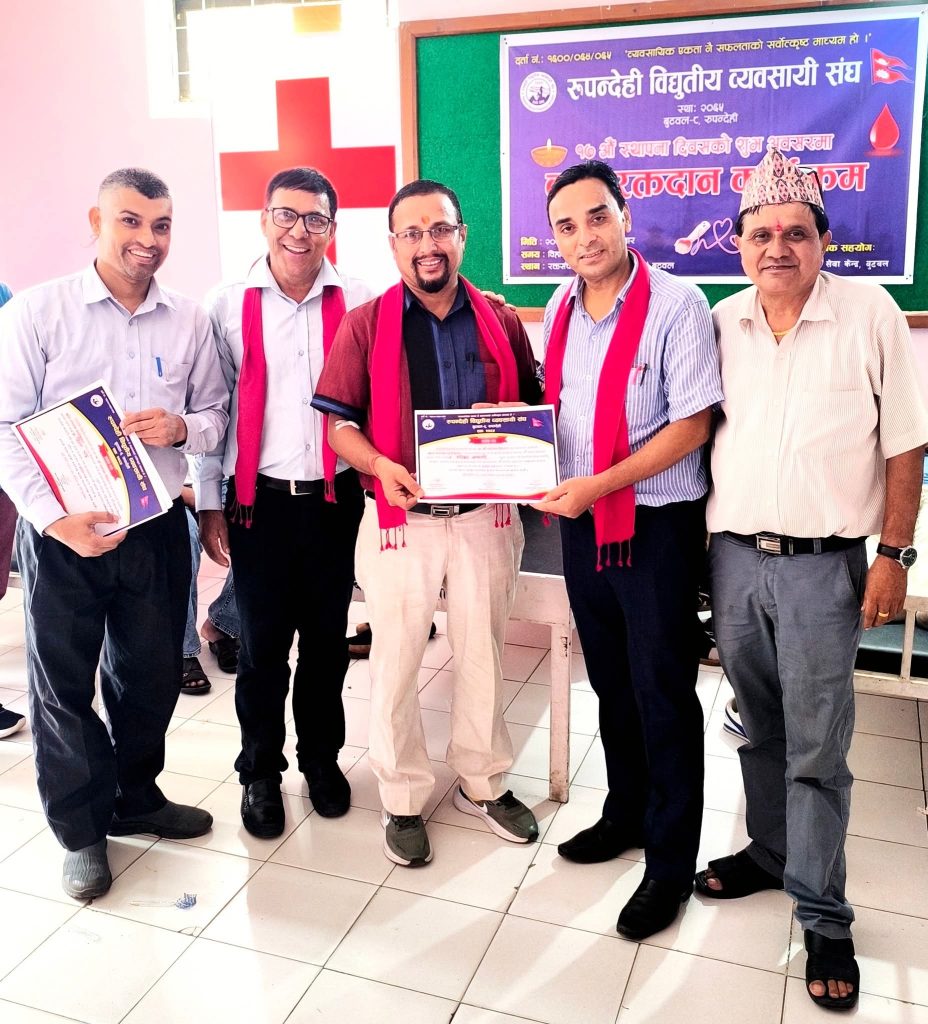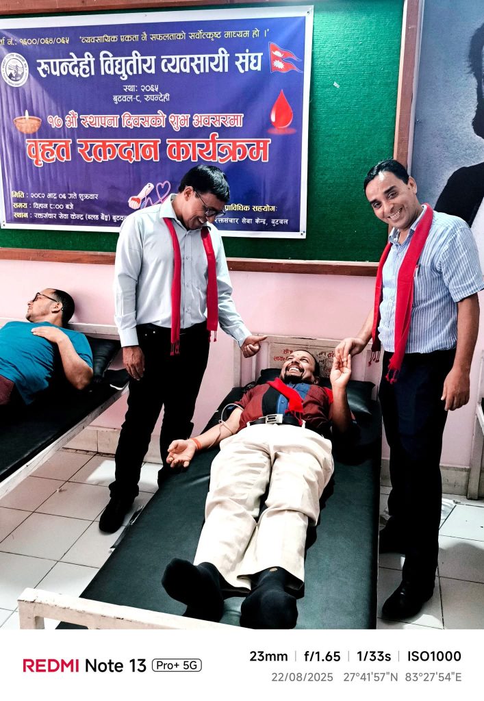 रूपन्देही विद्युतीय व्यवसायी संघले संघको १७औं स्थापना दिवसको अवसरमा बृहत रक्तदान कार्यक्रम सम्पन्न गरेको छ।