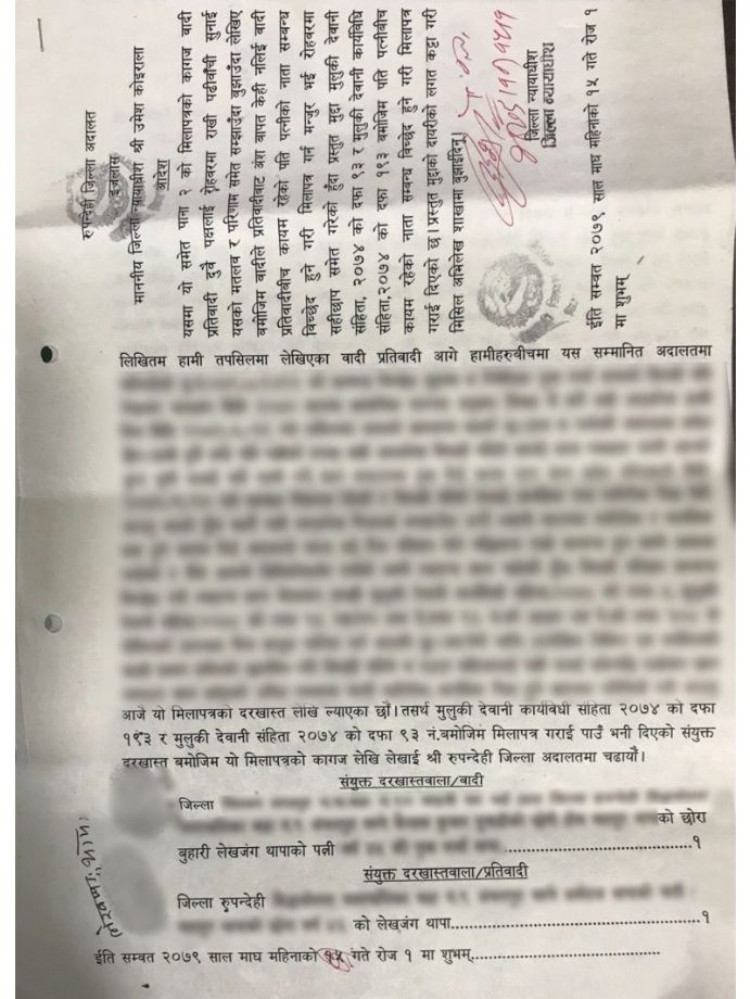 रुपन्देही क्षेत्रनम्बर ३ मा हुन लागेको उपनिर्वाचनमा राष्ट्रिय स्वतन्त्र पार्टी (रास्वपा) का उम्मेदवार डा. लेखजंग थापाले पहिलो श्रीमतीसँग डिभोर्स भइसकेको कागजात सार्वजनिक गरेका छन् ।