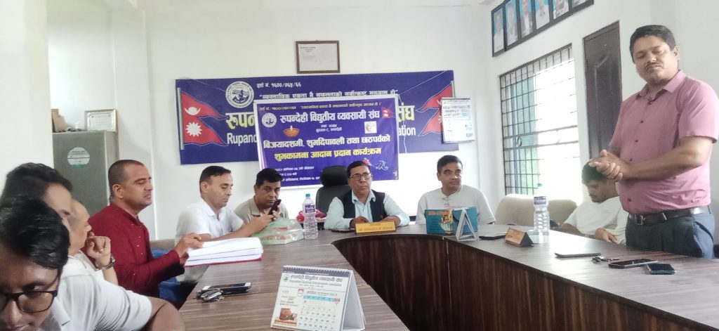 रुपन्देही विद्युतीय व्यवसायी सङ्घले आउँदै गरेका महत्वपूर्ण पर्व विजयादशमी ,दीपावली तथा छठ पर्वको अवसर पारेर शुभकामना आदानप्रदान कार्यक्रम सम्पन्न गरेको छ।